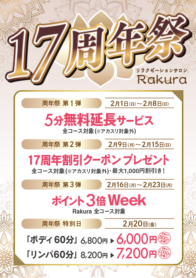 Rakura利用で特別クーポン進呈(アカスリ対象外)