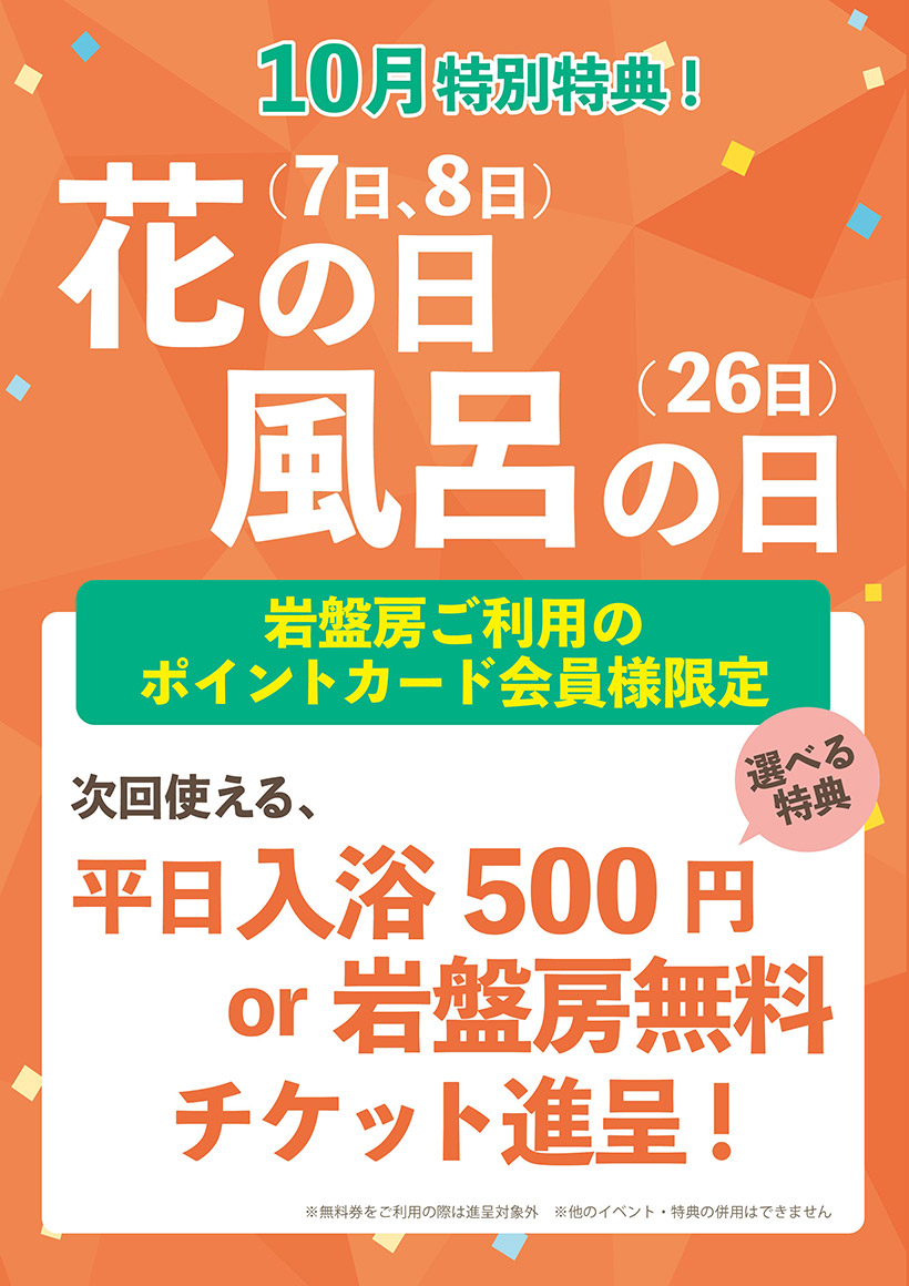 当日、岩盤房をご利用のポイント会員様に、次回利用できる選べる特典チケット進呈!