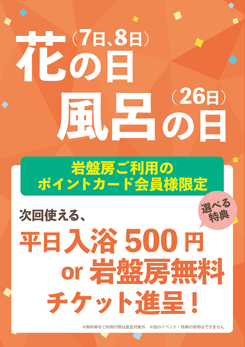 11月7日、8日、26日開催 11月限定花の日・風呂の日特別プレゼント